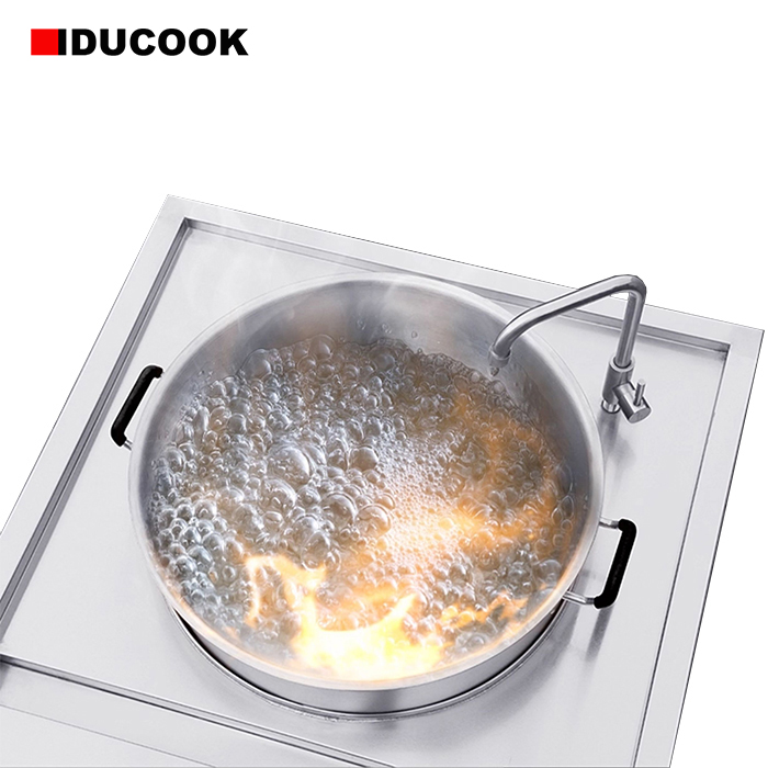 InduCook tự hào là đơn vị chuyên sản xuất và cung cấp bếp từ công nghiệp chất lượng cao. Sản phẩm bếp hầm điện nồi rời đặt âm được thiết kế tối ưu với nồi đặt âm gọn gàng, thẩm mỹ và an toàn tuyệt đối khi sử dụng. Bếp sử dụng mặt kính Ceramic dày dặn, công nghệ gia nhiệt hiện đại, tích hợp vòi cấp nước tiện lợi, giúp quá trình hầm xương, ninh nước dùng nhanh chóng, tiết kiệm chi phí vận hành. Với vật liệu inox 304 cao cấp, độ bền vượt trội cùng chế độ bảo hành nhanh chóng.